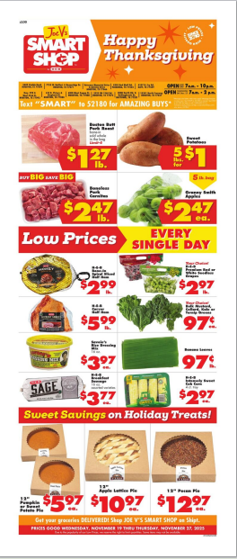 The Joevs Weekly Ad 28nov-2dec,2025 is the best way to find fresh deals and save more on your weekly shopping. Each flyer is updated with new discounts on groceries, pantry items, fresh produce, meat, and household essentials. Whether you’re looking for everyday savings or limited-time promotions, Joevs makes it easy to plan ahead and get more value for your money.